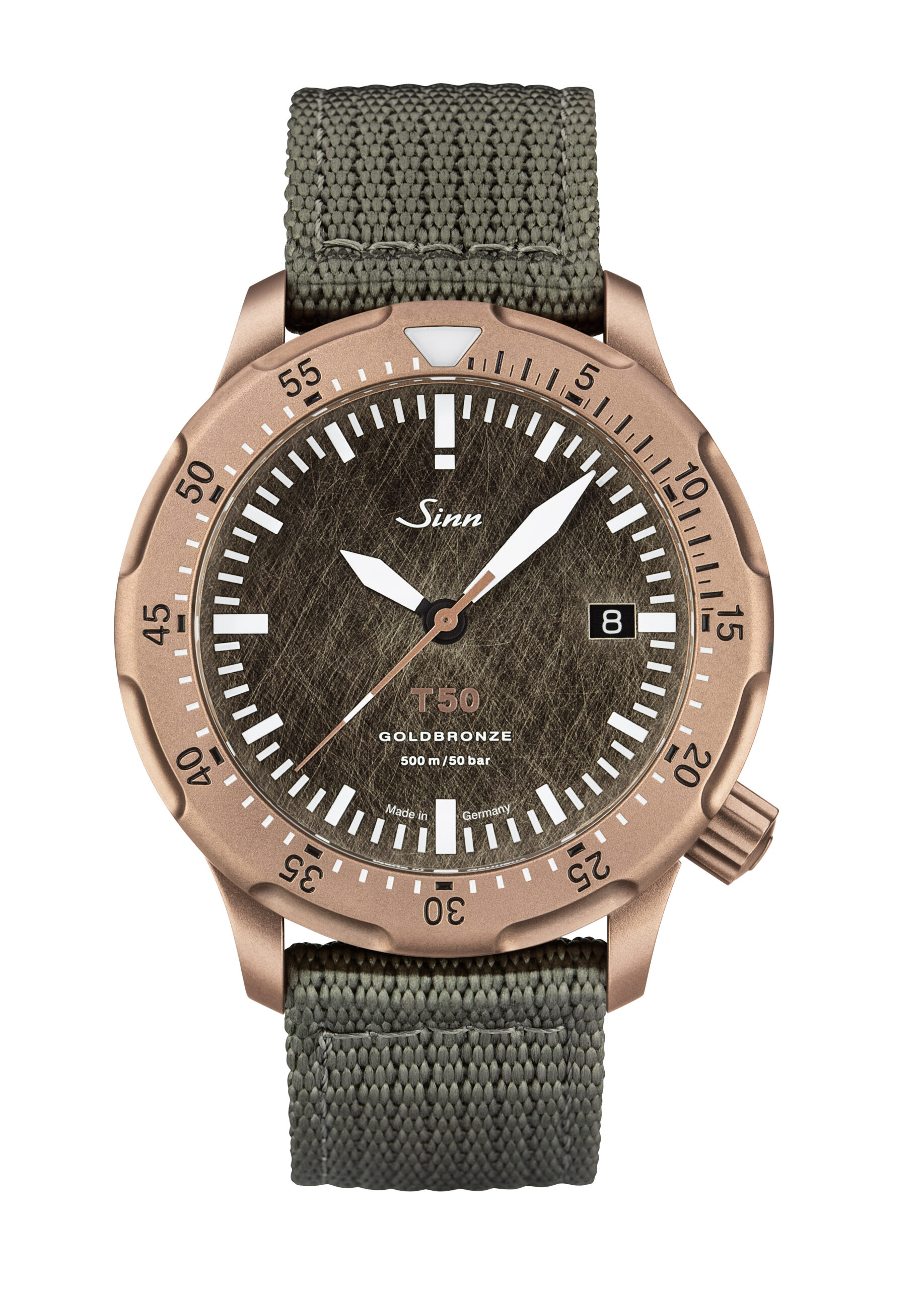 Gehäuse: Gehäuse, Krone und Drehring aus Goldbronze 125, perlgestrahlt